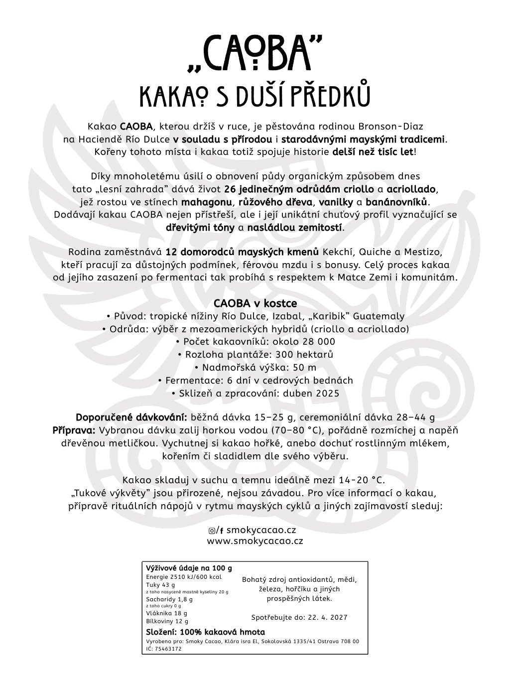 • Odrůda: výběr z mezoamerických hybridů (criollo a acriollado)